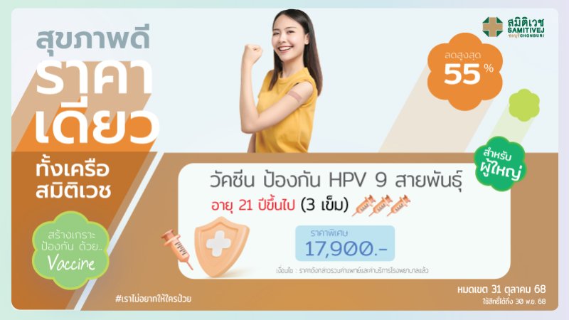โปรโมชั่นนี้ใช้ได้เฉพาะ รพ.สมิติเวช สาขา ชลบุรี เท่านั้น
